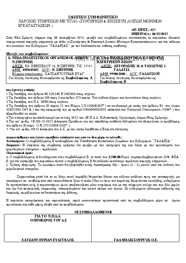 9. ΙΔΙΩΤΙΚΟ ΣΥΜΦΩΝΗΤΙΚΟ ΓΙΑ ΤΟΠΟΘΕΤΗΣΗ & ΠΑΤΩΜΑΤΩΝ ΤΟΥ ΠΟΛΥΧΩΡΟΥ ΄΄ΓΑΛΑΞΙΑ΄΄