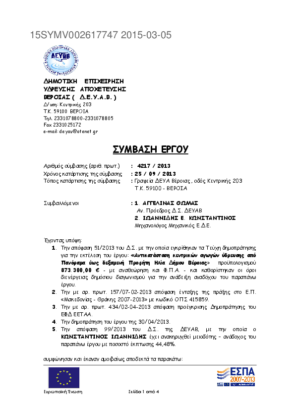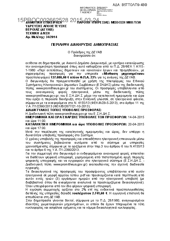 Αναζήτηση σε προκηρύξεις και συμβάσεις για:
