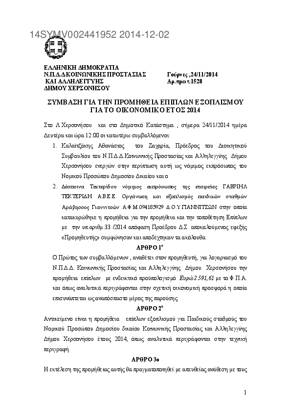 1. ΠΡΟΜΗΘΕΙΑ ΕΠΙΠΛΩΝ ΕΞΟΠΛΙΣΜΟΥ