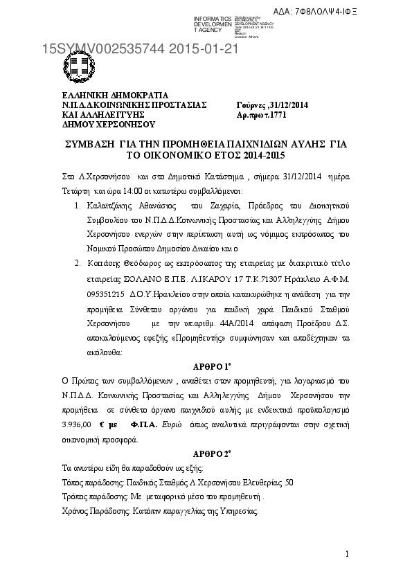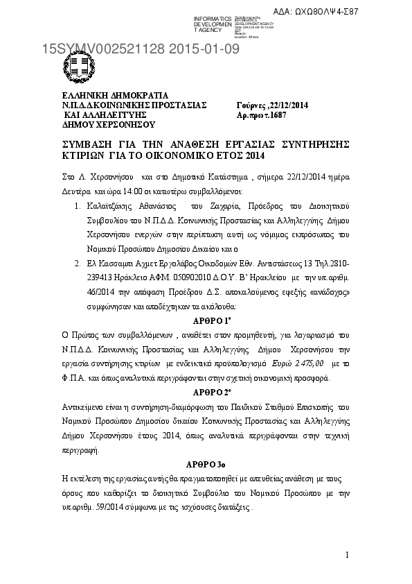 Αναζήτηση σε προκηρύξεις και συμβάσεις για: