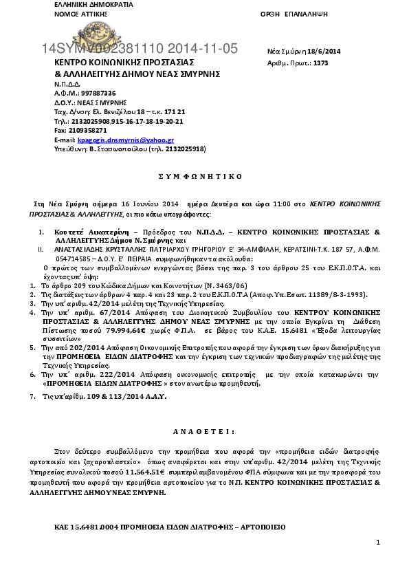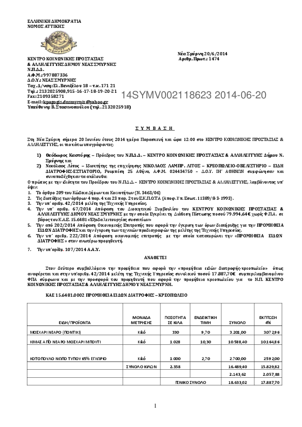 1. ΠΡΟΜΗΘΕΙΑ ΕΙΔΩΝ ΔΙΑΤΡΟΦΗΣ 2014
