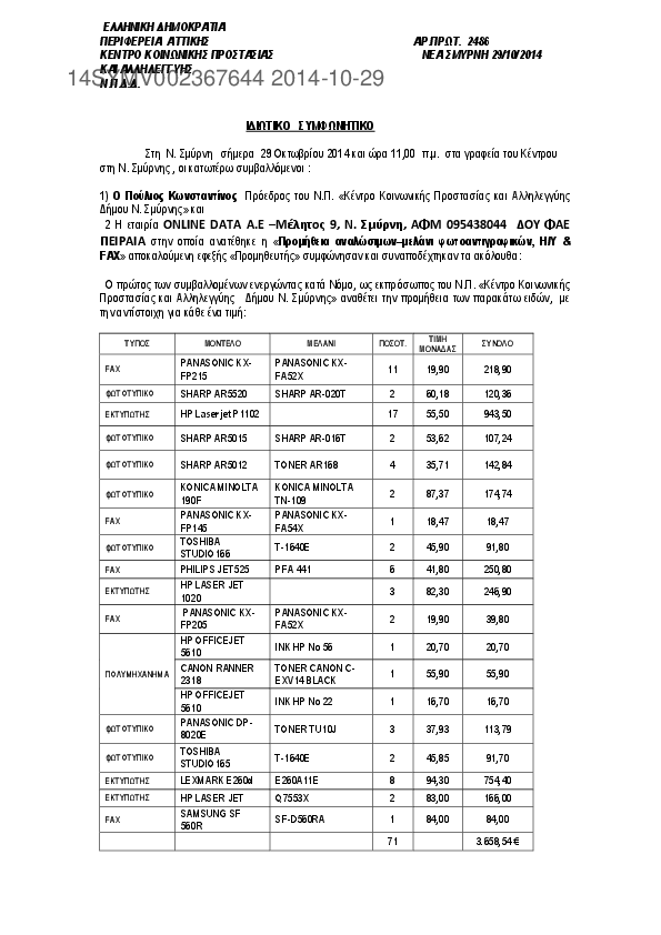 9. Προμήθεια αναλώσιμων–μελάνι φωτοαντιγραφικών, Η/Υ & FAX
