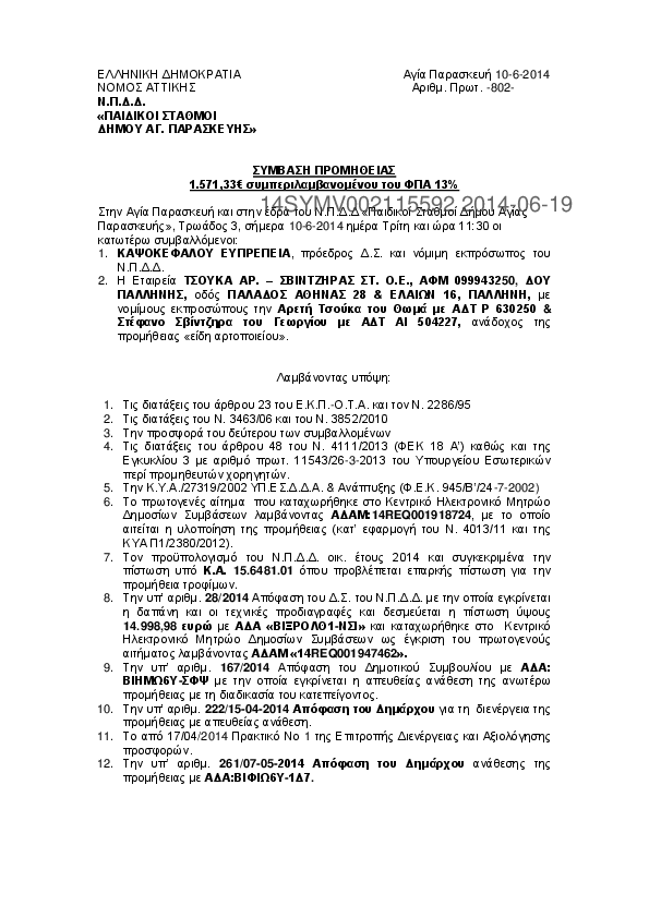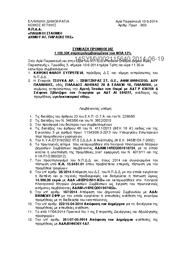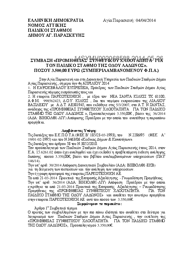 7. ΣΥΜΒΑΣΗ ΠΡΟΜΗΘΕΙΑΣ ΣΥΝΘΕΤΙΚΟΥ ΧΛΟΟΤΑΠΗΤΑ ΓΙΑ ΤΟΝ ΠΑΙΔΙΚΟ ΣΤΑΘΜΟ ΤΗΣ ΟΔΟΥ ΛΑΔΩΝΟΣ