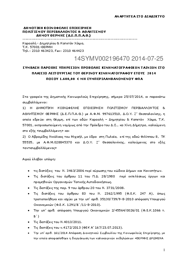 4. ΣΥΜΒΑΣΗ ΠΑΡΟΧΗΣ ΥΠΗΡΕΣΙΩΝ ΠΡΟΒΟΛΗΣ ΚΙΝΗΜΑΤΟΓΡΑΦΙΚΩΝ ΤΑΙΝΙΩΝ ΕΤΟΥΣ 2014