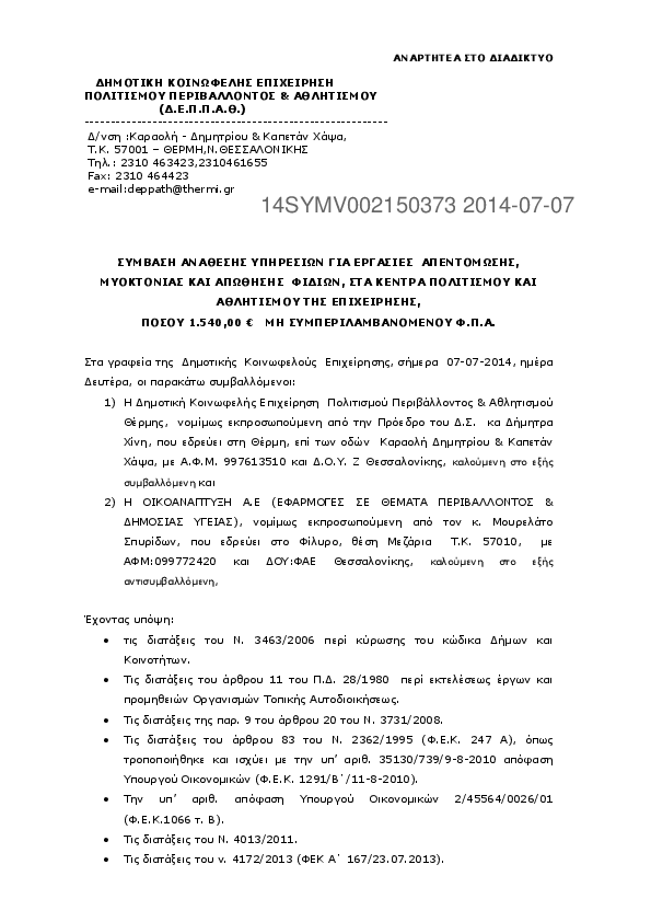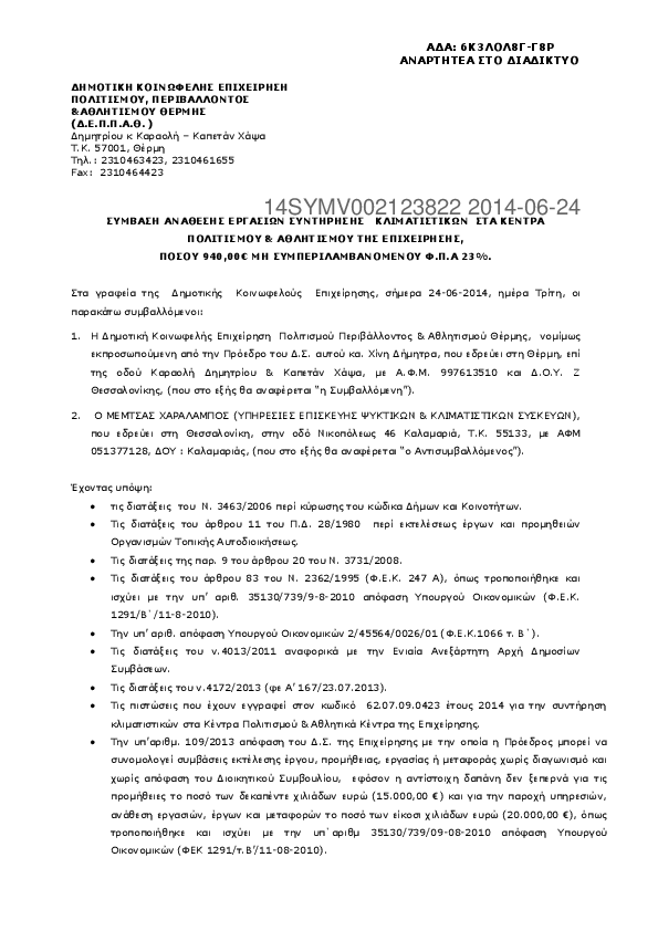 1. ΣΥΜΒΑΣΗ ΑΝΑΘΕΣΗΣ ΕΡΓΑΣΙΩΝ ΣΥΝΤΗΡΗΣΗΣ ΚΛΙΜΑΤΙΣΤΙΚΩΝ, ΣΤΑ ΚΕΝΤΡΑ ΠΟΛΙΤΙΣΜΟΥ & ΑΘΛΗΤΙΣΜΟΥ.