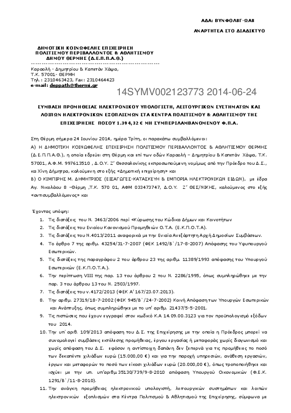2. ΣΥΜΒΑΣΗ ΠΡΟΜΗΘΕΙΑΣ ΗΛΕΚΤΡΟΝΙΚΟΥ ΥΠΟΛΟΓΙΣΤΗ ΚΑΙ ΛΟΙΠΩΝ ΗΛΕΚΤΡΟNIKΩΝ ΕΞΟΠΛΙΣΜΩΝ
