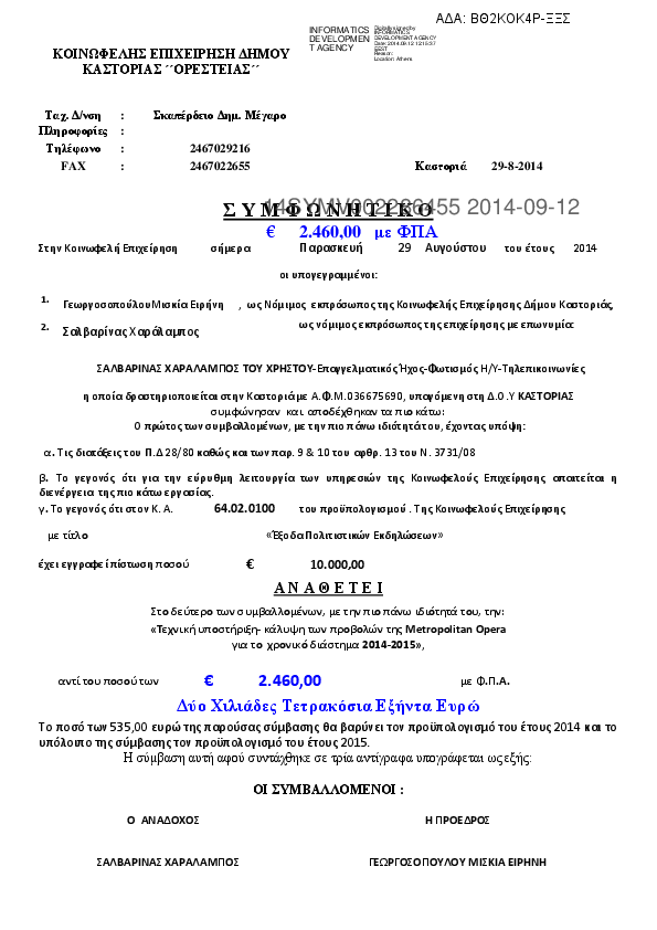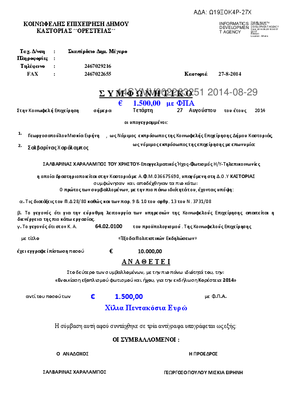3. ΣΥΜΦΩΝΗΤΙΚΟ ΔΙΟΡΓΑΝΩΣΗΣ ΠΟΛΙΤΙΣΤΙΚΩΝ ΕΚΔΗΛΩΣΕΩΝ