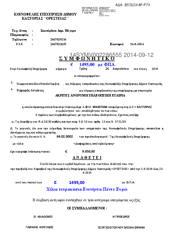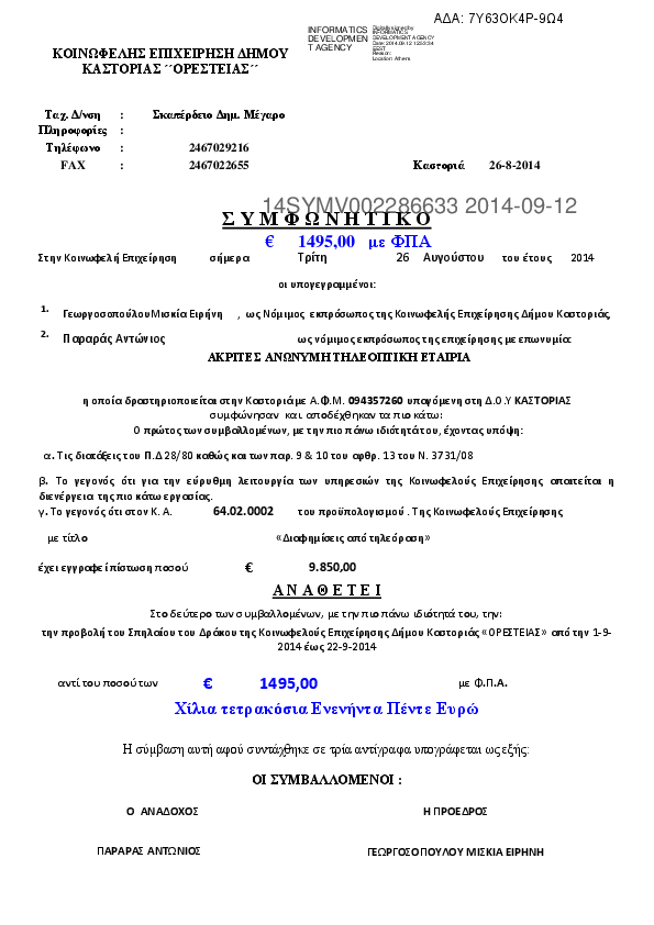 Αναζήτηση σε προκηρύξεις και συμβάσεις για:
