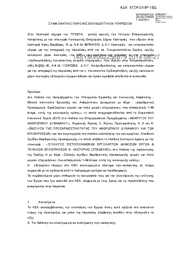 1. ΣΥΜΦΩΝΗΤΙΚΟ ΠΑΡΟΧΗΣ ΕΚΠΑΙΔΕΥΤΙΚΩΝ ΥΠΗΡΕΣΙΩΝ