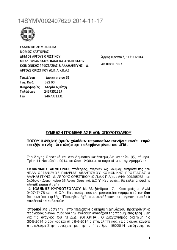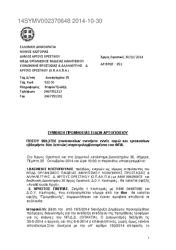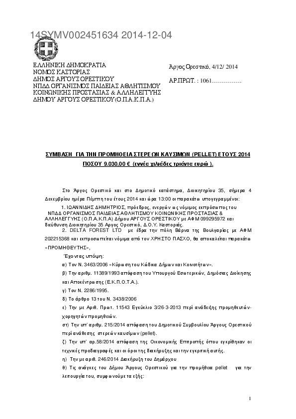 1. ΣΥΜΒΑΣΗ ΓΙΑ ΤΗΝ ΠΡΟΜΗΘΕΙΑ ΚΑΥΣΙΜΩΝ ΘΕΡΜΑΝΣΗΣ ΕΤΟΥΣ 2014