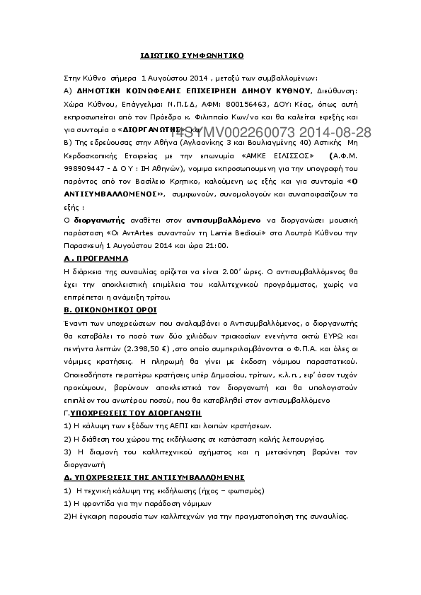 5. Σύμβαση για το δημιουργικό σχεδιασμό εικοσισέλιδου εντύπου για την προβολή και διαφήμιση του νησιού