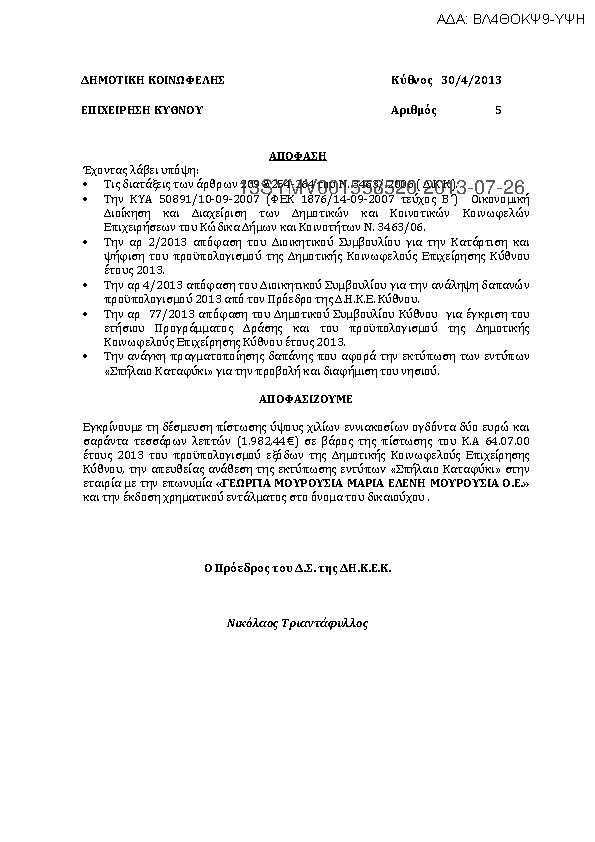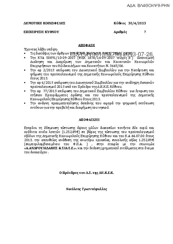 1. Σύμβαση για την Αμοιβή των λεωφορειούχων για την πραγματοποίηση δρομολογίων
