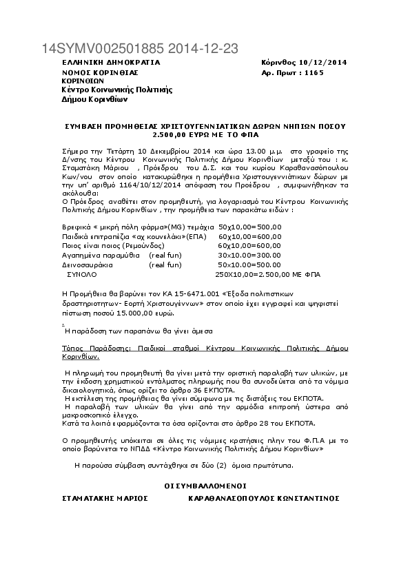 5. ΣΥΜΒΑΣΗ ΓΙΑ ΤΗΝ ΠΡΟΜΗΘΕΙΑ ΕΔΕΣΜΑΤΩΝ ΓΙΑ ΧΡΙΣΤΟΥΓΕΝΝΙΑΤΙΚΗ ΕΟΡΤΗ ΜΕΛΩΝ ΚΑΠΗ