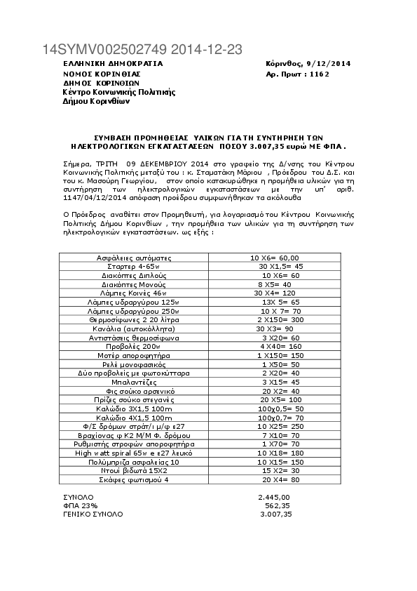 4. ΣΥΜΒΑΣΗ ΓΙΑ ΤΗΝ ΠΡΟΜΗΘΕΙΑ ΗΛΕΚΤΡΟΛΟΓΙΚΟΥ ΕΞΟΠΛΙΣΜΟΥ ΓΙΑ ΤΗ ΣΥΝΤΗΡΗΣΗ ΤΩΝ ΗΛΕΚΤΡΟΛΟΓΙΚΩΝ ΕΓΚΑΤΑΣΤΑΣΕΩ