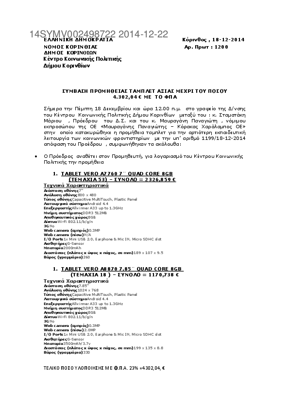 2. ΣΥΜΒΑΣΗ ΓΙΑ ΤΗΝ ΠΡΟΜΗΘΕΙΑ ΤΑΜΠΛΕΤ ΓΙΑ ΤΗ ΛΕΙΤΟΥΡΓΙΑ ΚΑΙ ΟΡΓΑΝΩΣΗ ΤΩΝ ΚΟΙΝΩΝΙΚΩΝ ΦΡΟΝΤΙΣΤΗΡΙΩΝ