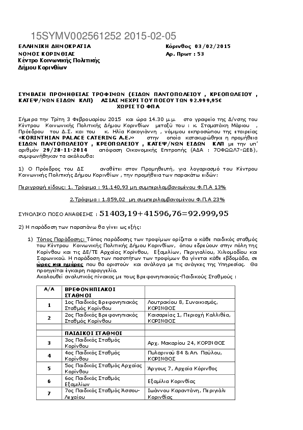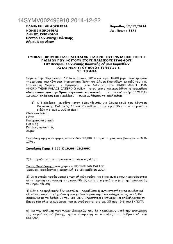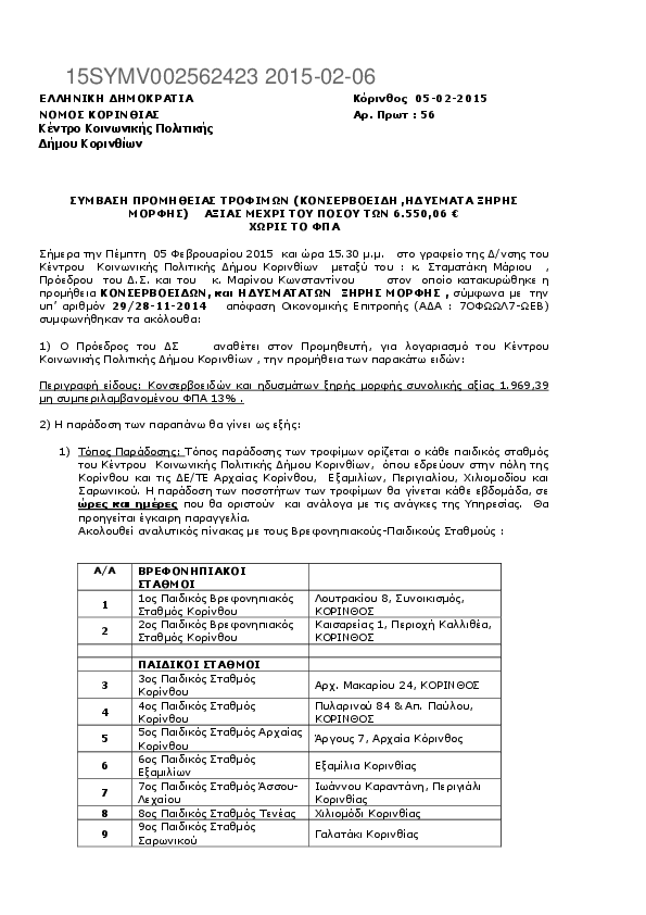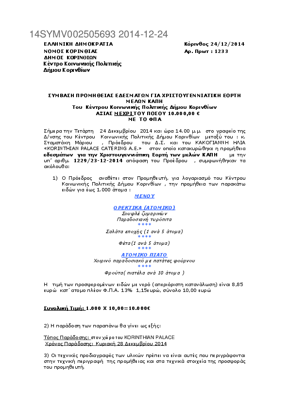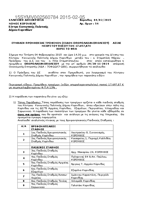 1. ΣΥΜΒΑΣΗ ΓΙΑ ΤΗΝ ΠΑΡΟΧΗ ΓΕΥΜΑΤΟΣ ΓΙΑ ΤΗ ΧΡΙΣΤΟΥΓΕΝΝΙΑΤΙΚΗ ΓΙΟΡΤΗ ΤΩΝ ΠΑΙΔΙΩΝ ΤΩΝ ΠΑΙΔΙΚΩΝ ΣΤΑΘΜΩΝ