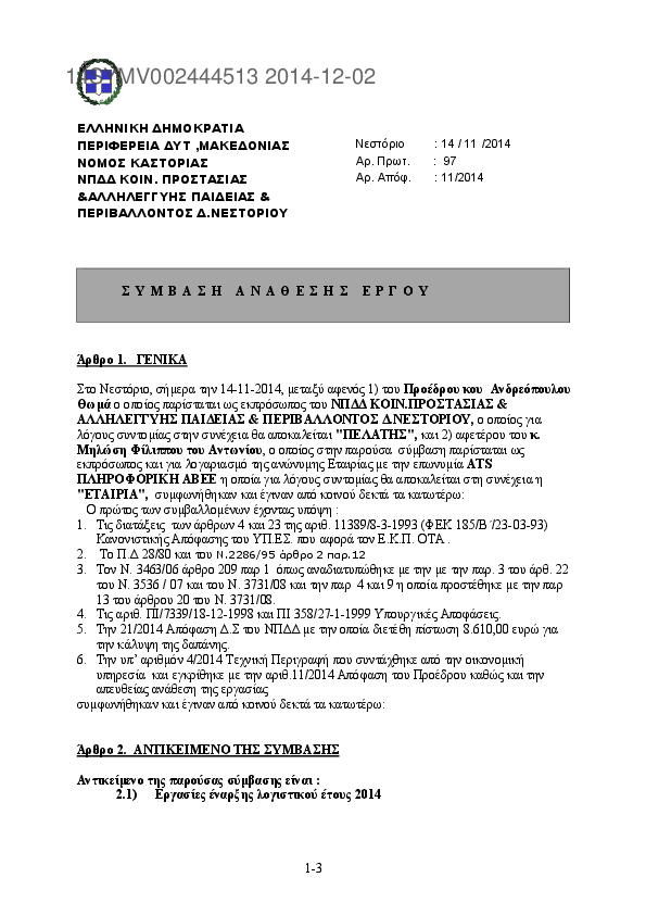 ΝΟΜΙΚΟ ΠΡΟΣΩΠΟ ΔΗΜΟΣΙΟ...