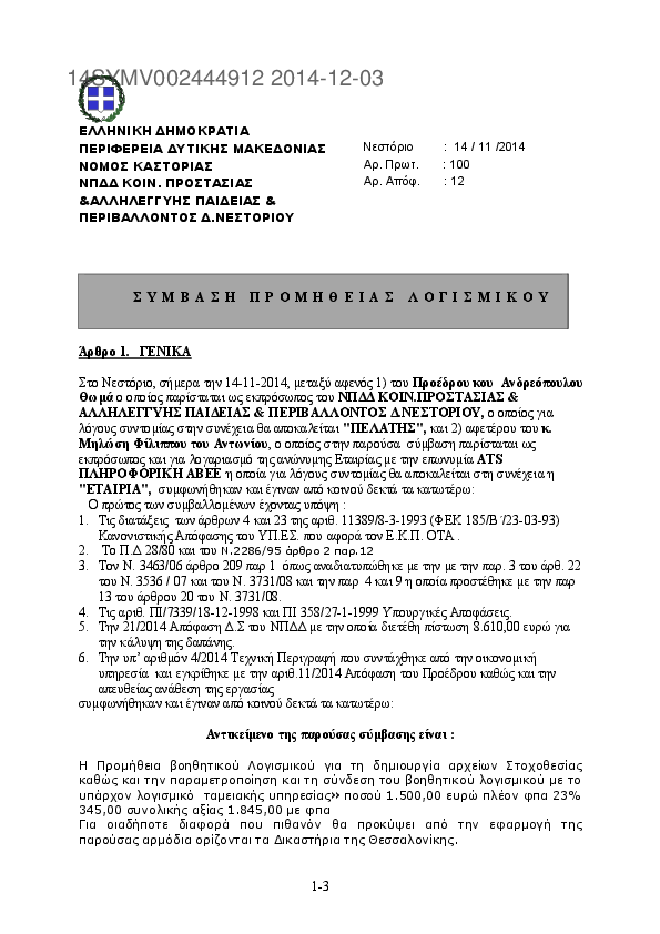 3. ΣΥΜΒΑΣΗΣ ΕΤΗΣΙΑΣ ΠΑΡ. ΥΠΗΡ. ΥΠΟΣΤΗΡΙΞΗΣ ΛΟΓΙΣΜΙΚΩΝ ΠΡΟΓΡΑΜΜΑΤΩΝ & ΠΛΗΡΟΦΟΡΙΚΗΣ