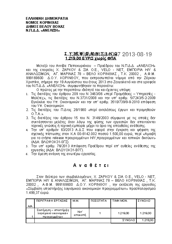 ΝΠΔΔ ΑΝΕΛΙΞΗ ΒΕΛΟΥ ΒΟΧΑΣ