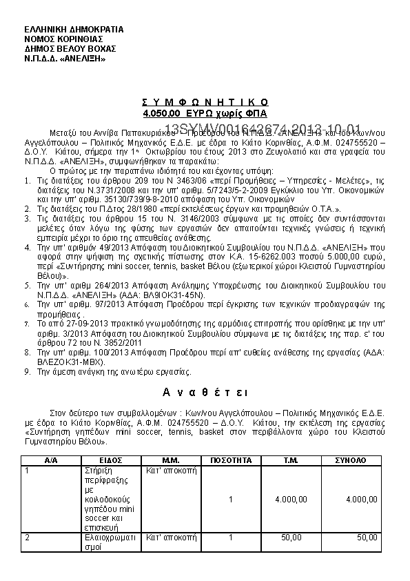 2. Συντήρηση γηπέδων mini soccer, tennis, basket στον περιβάλλοντα χώρο του Κλειστού Γυμναστηρίου Βέλου