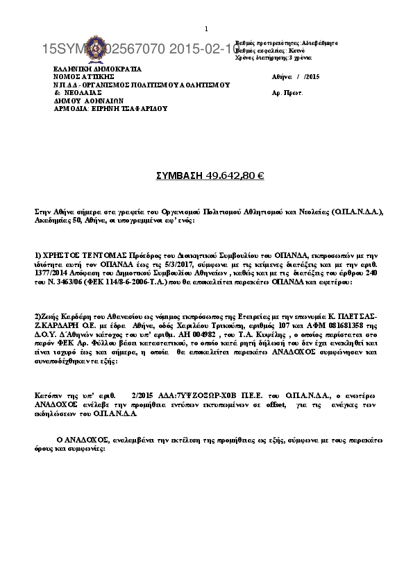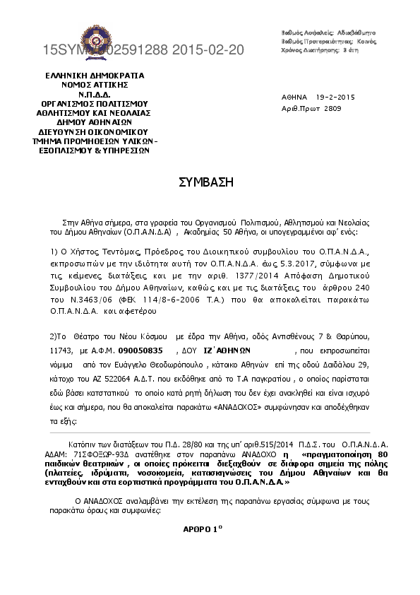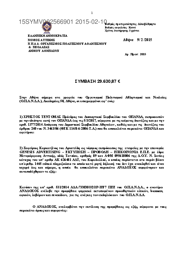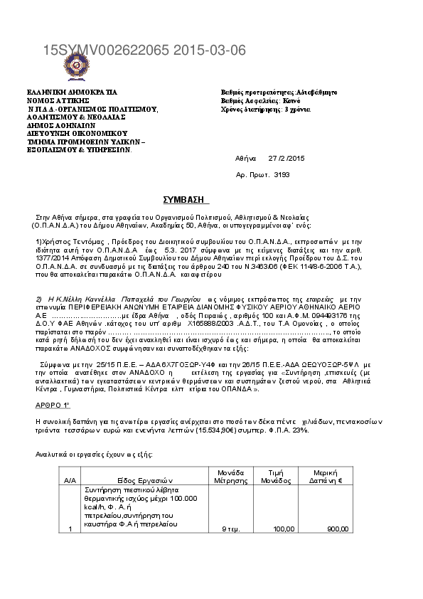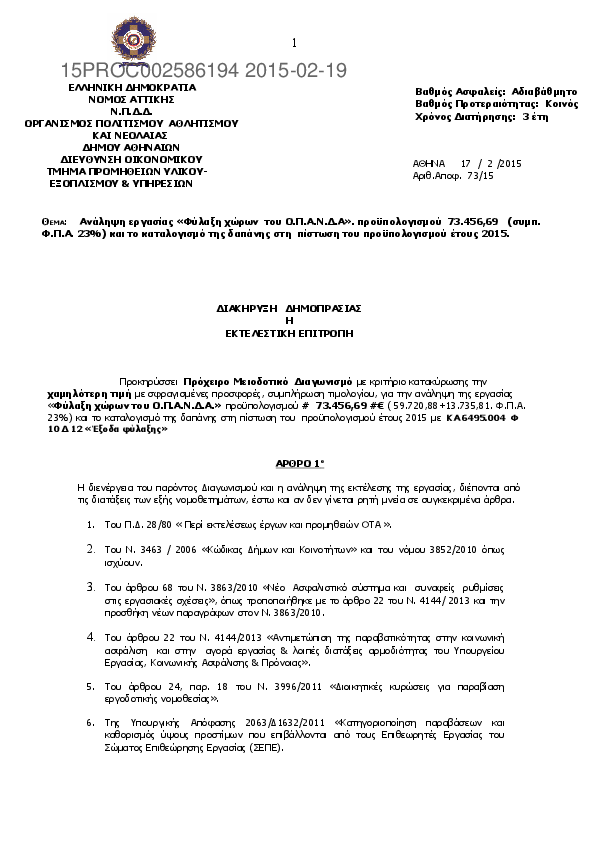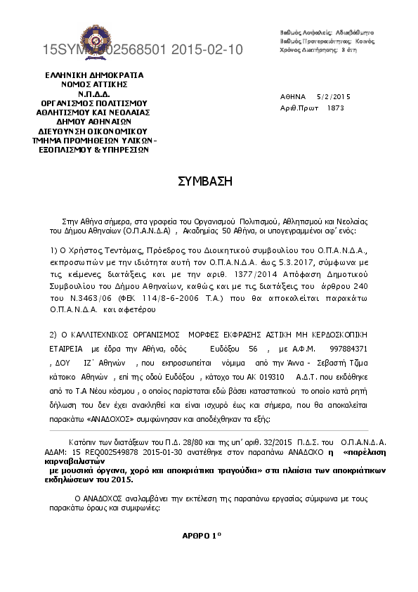 Αναζήτηση σε προκηρύξεις και συμβάσεις για: