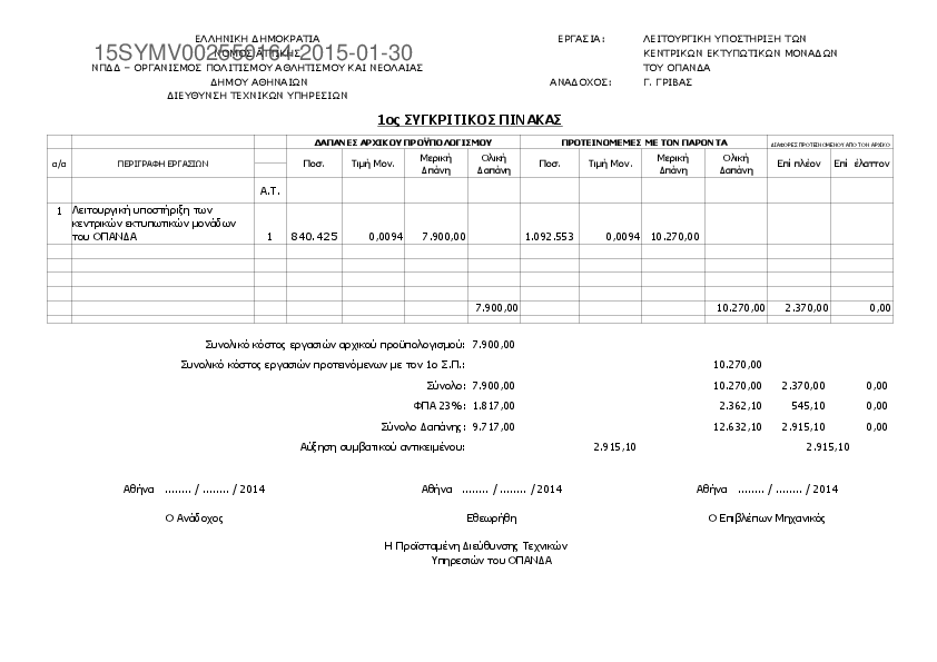 1. ΕΡΓΑΣΙΕΣ ΣΥΝΤΗΡΗΣΗΣ ΚΑΙ ΛΕΙΤΟΥΡΓΙΚΗ ΥΠΟΣΤΗΡΙΞΗ ΚΕΝΤΡΙΚΩΝ ΕΚΤΥΠΩΤΙΚΩΝ ΜΟΝΑΔΩΝ Ο.Π.Α.Ν.Δ.Α