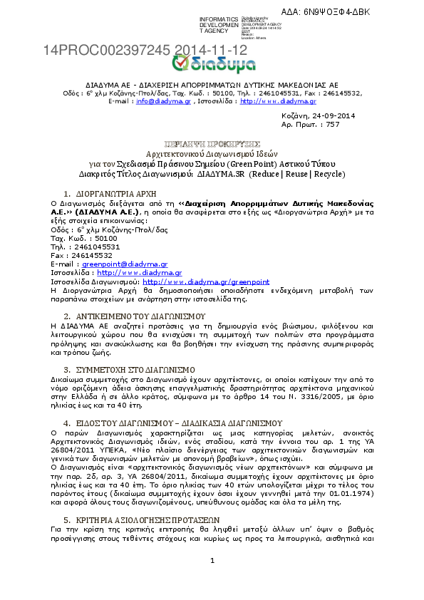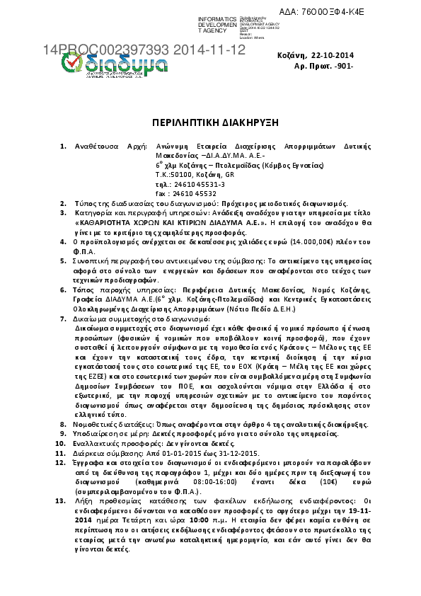Αναζήτηση σε προκηρύξεις και συμβάσεις για: