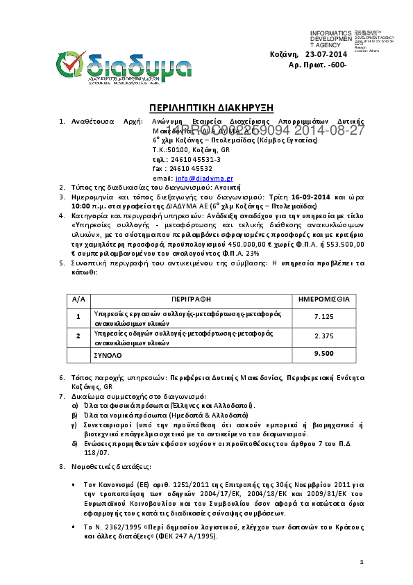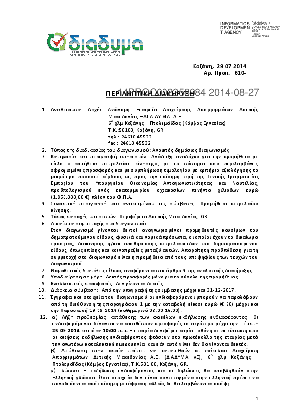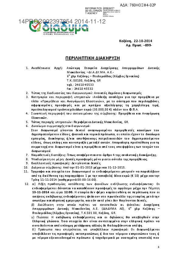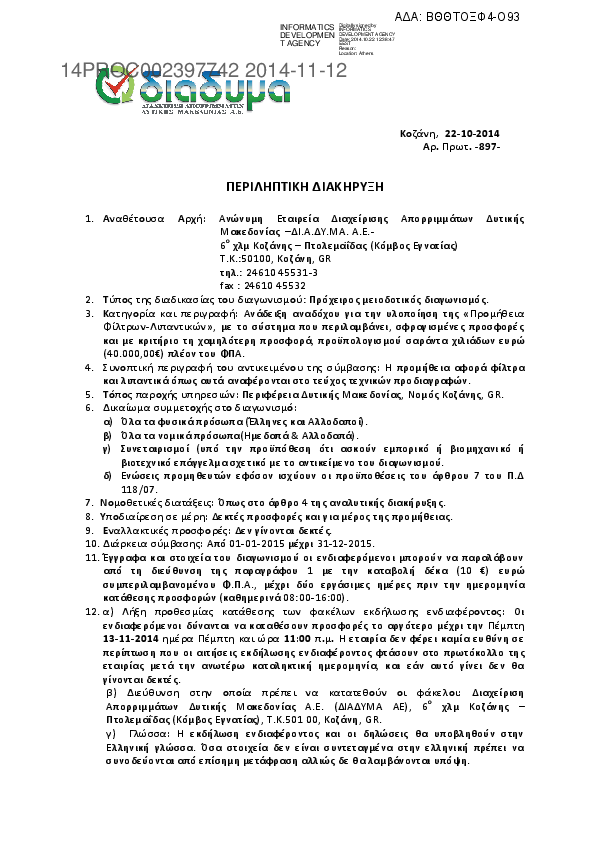 Αναζήτηση σε προκηρύξεις και συμβάσεις για: