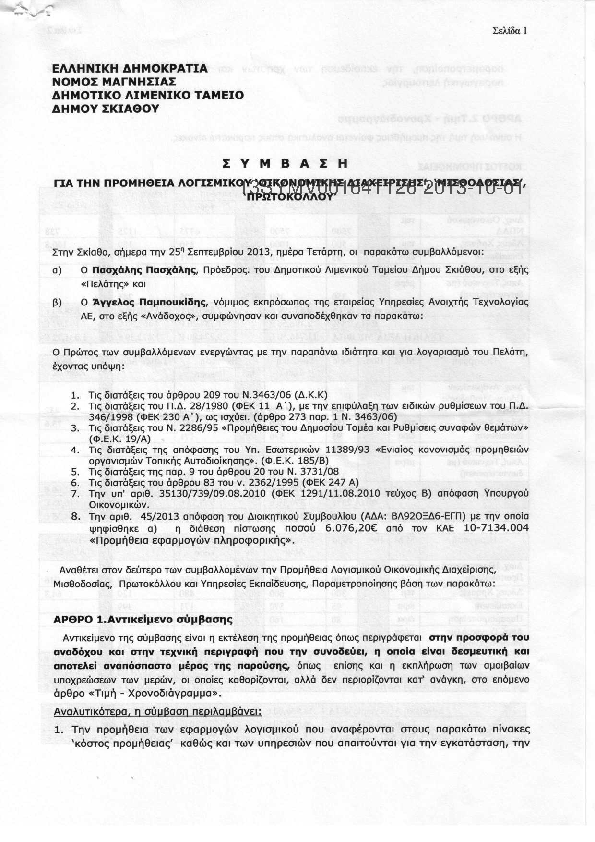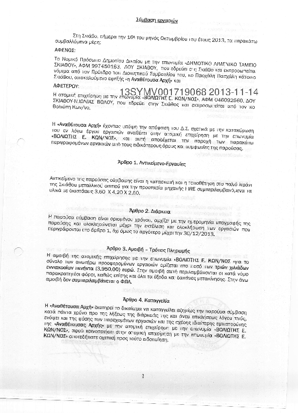 2. ΣΥΜΒΑΣΗ ΓΙΑ ΤΗΝ ΠΡΟΜΗΘΕΙΑ ΜΠΑΡΑΣ ΣΤΟ ΛΙΜΑΝΙ ΤΗΣ ΣΚΙΑΘΟΥ