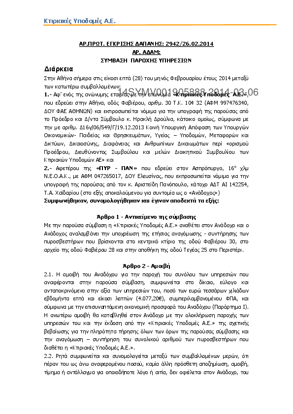 1. ΠΑΡΟΧΗ ΥΠΗΡΕΣΙΩΝ ΕΤΗΣΙΟΥ ΕΛΕΓΧΟΥ ΚΑΙ ΑΝΑΓΟΜΩΣΗς ΤΩΝ ΠΥΡΟΣΒΕΣΤΙΚΩΝ ΣΥΣΚΕΥΩΝ
