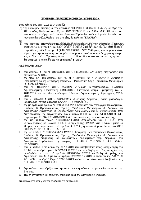5. Παροχή υπηρεσιών νομικού συμβούλου για τα έργα ΣΔΙΤ Αττικής