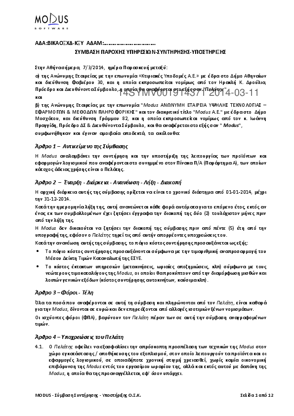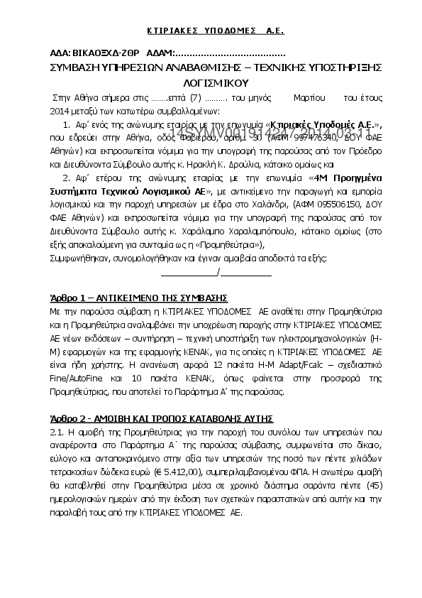 4. ΣΥΜΒΑΣΗ ΥΠΗΡΕΣΙΩΝ ΑΝΑΒΑΘΜΙΣΗΣ-ΤΕΧΝΙΚΗΣ ΥΠΟΣΤΗΡΙΞΗΣ ΛΟΓΙΣΜΙΚΟΥ Η-Μ ΓΙΑ ΤΟ 2014