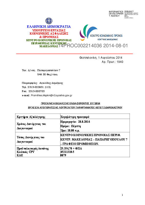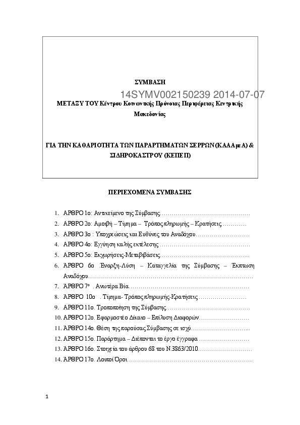 2. ΠΡΟΧΕΙΡΟΣ ΜΕΙΟΔΟΤΙΚΟΣ ΔΙΑΓΩΝΙΣΜΟΣ ΚΑΘΑΡΙΟΤΗΤΑΣ ΠΑΡΑΡΤ. ΣΕΡΡΩΝ (Κ.Α.Α.ΑμεΑ) & ΣΙΔΗΡΟΚΑΣΤΡΟΥ (ΚΕΠΕΠ)
