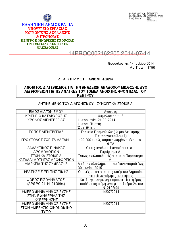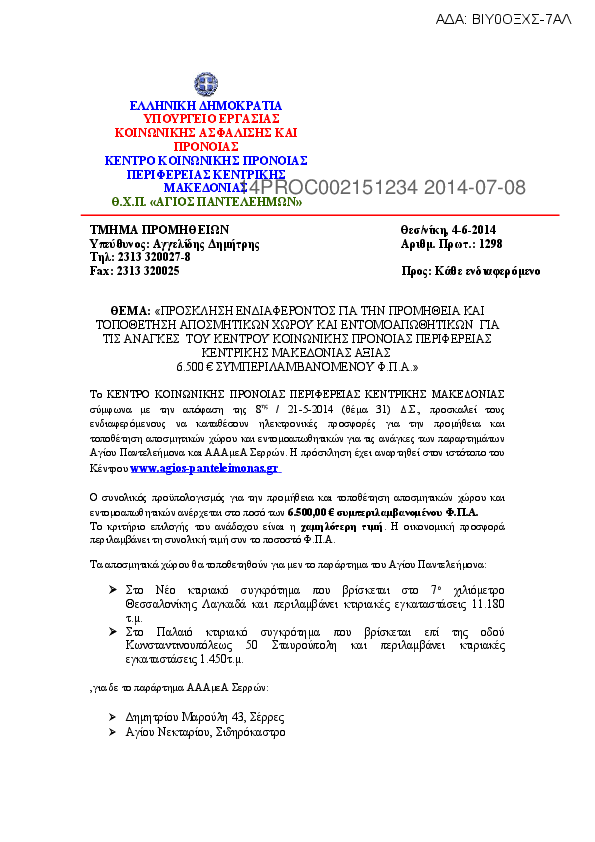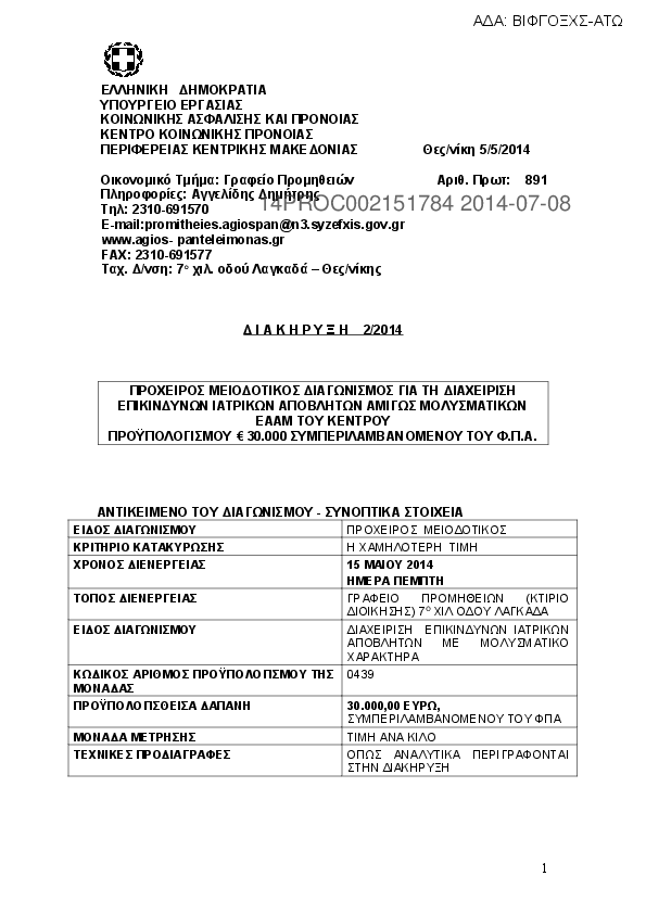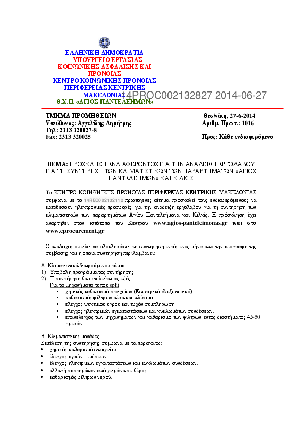 Αναζήτηση σε προκηρύξεις και συμβάσεις για: