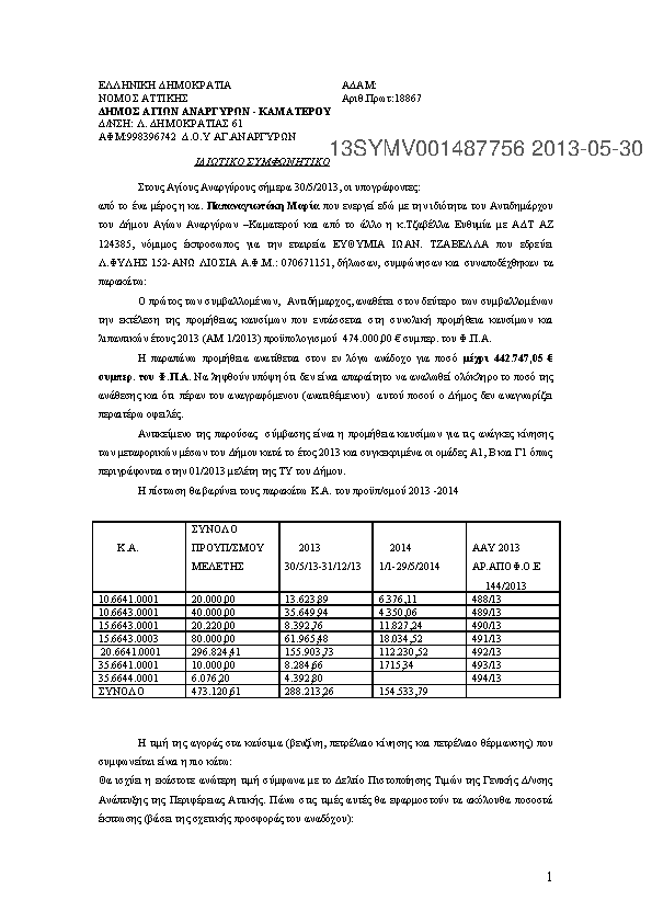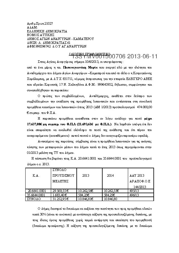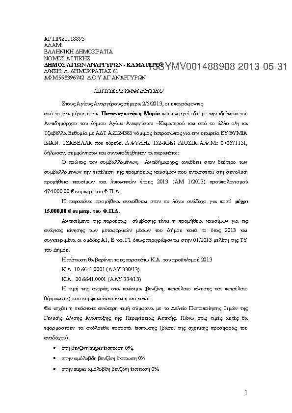 1. ΠΡΟΜΗΘΕΙΑ ΚΑΥΣΙΜΩΝ ΚΙΑΙ ΛΙΠΑΝΤΙΚΩΝ ΕΤΟΥς 2013