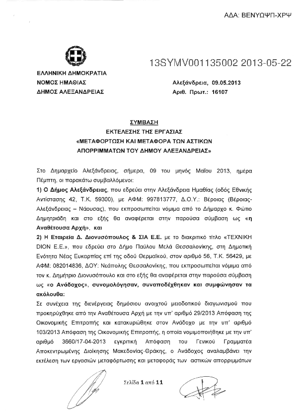 4. Μεταφόρτωση και μεταφορά των αστικών απορριμμάτων του Δήμου Αλεξάνδρειας