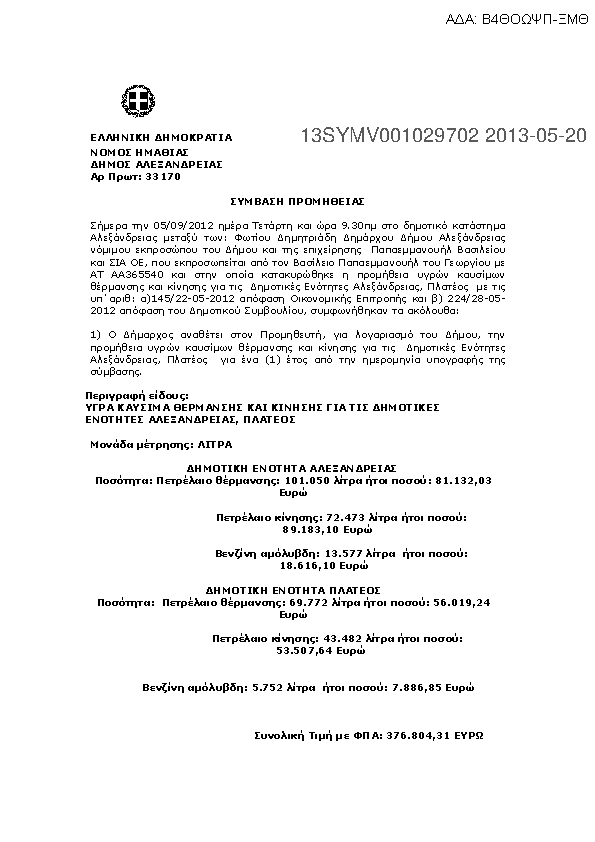 6. προμήθεια υγρών καυσίμων θέρμανσης και κίνησης για τις Δη. Ενότητες Αλεξάνδρειας και Πλατέος