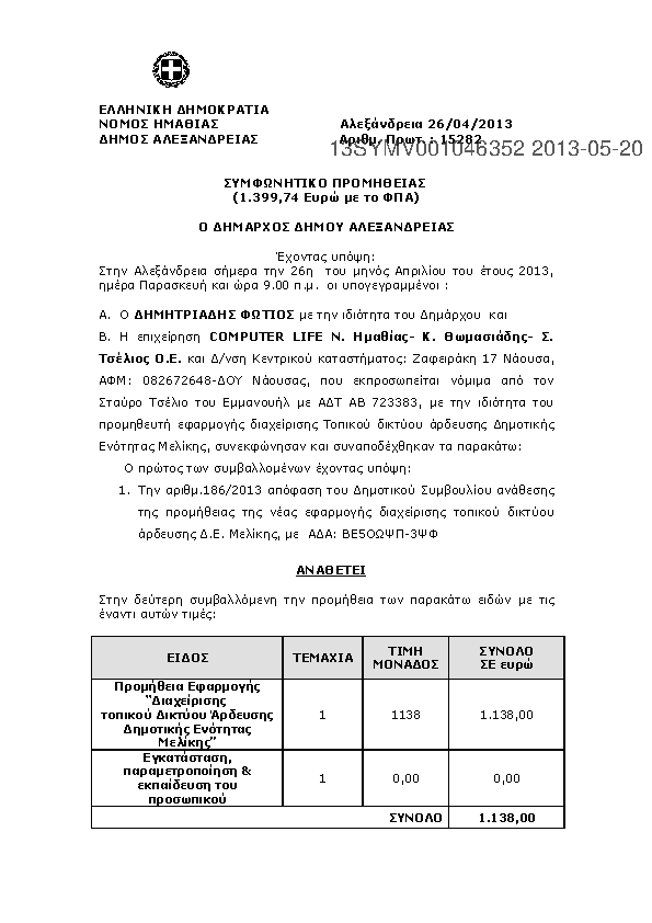 5. προμήθεια εφαρμογής Διαχείριση τοπικού δικτύου άρδευσης Δημοτικής Ενότητας Μελίκης