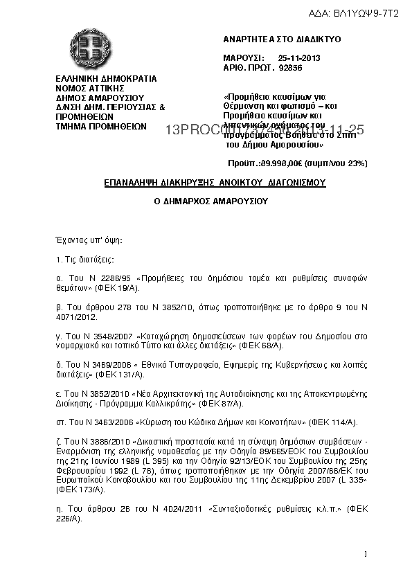 10. ΕΠΑΝΑΛΗΨΗ ΔΙΑΚΗΡΥΞΗΣ ΔΗΜΑΡΧΟΥ ΑΝΟΙΚΤΟΥ ΔΙΑΓΩΝΙΣΜΟΥ ΠΡΟΜΗΘΕΙΑΣ ΚΑΥΣΙΜΩΝ ΓΙΑ ΘΕΡΜΑΝΣΗ ΚΑΙ ΦΩΤΙΣΜΟ ΚΑΘΩΣ ΚΑΙ ΛΙΠΑΝΤΙΚΩΝ ΟΧΗΜΑΤΟΣ ΤΟΥ ΠΡΟΓΡΑΜΜΑΤΟΣ ΒΟΗΘΕΙΑ ΣΤΟ ΣΠΙΤΙ ΤΟΥ ΔΗΜΟΥ ΑΜΑΡΟΥΣΙΟΥ