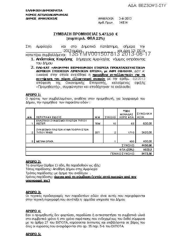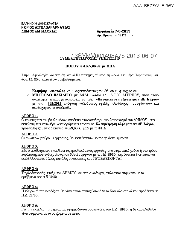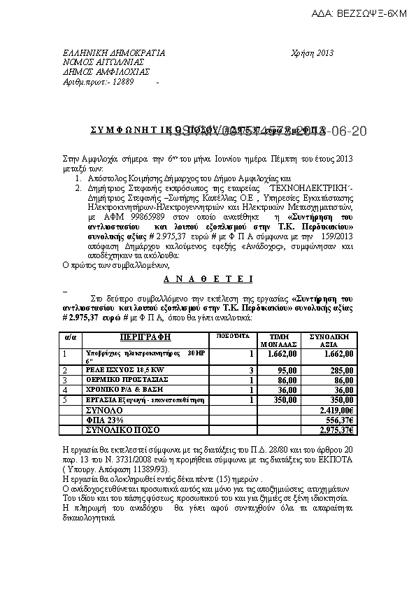 4. ΣΥΜΒΑΣΗ ΓΙΑ ΤΗ ΣΥΝΤΗΡΗΣΗ ΤΟΥ ΑΝΤΛΙΟΣΤΑΣΙΟΥ ΚΑΙ ΛΟΙΠΟΥ ΕΞΟΠΛΙΣΜΟΥ ΣΤΗ ΤΚ ΠΕΡΔΙΚΑΚΙΟΥ