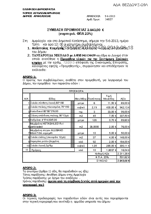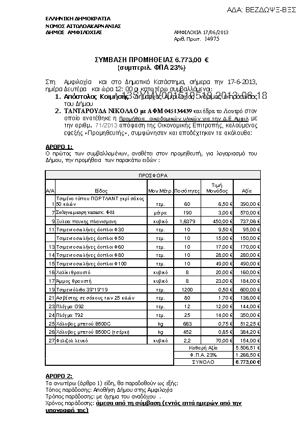 2. Προμήθεια οικοδομικών υλικών για την Δ.Ε Αμφιλοχίας
