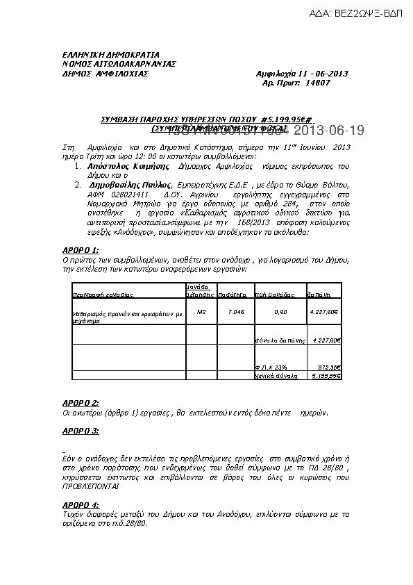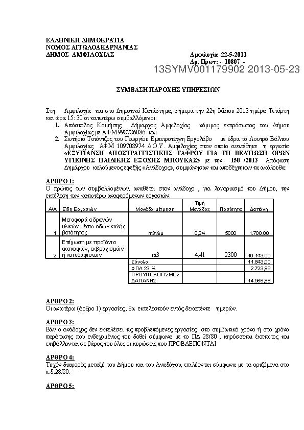 10. ΣΥΜΒΑΣΗ ΓΙΑ ΤΗΝ ΕΚΤΕΛΕΣΗ ΕΡΓΑΣΙΑΣ ΜΕ ΤΙΤΛΟ :«ΕΞΥΓΙΑΝΣΗ ΑΠΟΣΤΡΑΓΓΙΣΤΙΚΗΣ ΤΑΦΡΟΥ ΓΙΑ ΤΗ ΒΕΛΤΙΩΣΗ ΟΡΩΝ