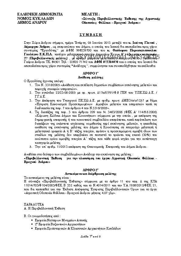 7. ΠΕΡΙΒΑΛΛΟΝΤΙΚΗ ΜΕΛΕΤΗ ΓΙΑ ΤΟ ΕΡΓΟ ΑΓΡΟΤΙΚΗ ΟΔΟΠΟΙΙΑ ΦΑΛΛΙΚΑ ΒΡΑΧΝΟΥ
