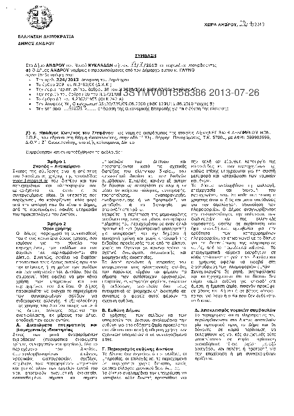 5. Συνδρομή για Υπηρεσία πρόσβασης στη Διαδικτυακή Βάση Δεδομένων «ΔήμοςΝΕΤ»