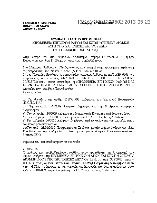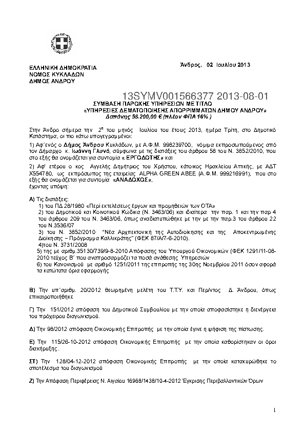1. ΥΠΗΡΕΣΙΕΣ ΔΕΜΑΤΟΠΟΙΗΣΗΣ ΑΠΟΡΡΙΜΜΑΤΩΝ ΔΗΜΟΥ ΑΝΔΡΟΥ