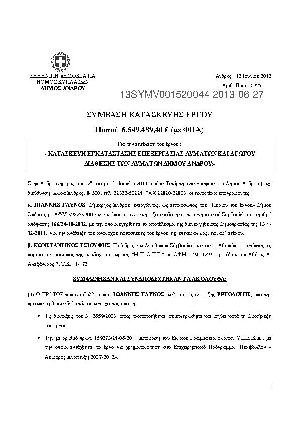 8. ΚΑΤΑΣΚΕΥΗ ΕΓΚΑΤΑΣΤΑΣΗΣ ΕΠΕΞΕΡΓΑΣΙΑΣ ΛΥΜΑΤΩΝ ΚΑΙ ΑΓΩΓΟΥ ΔΙΑΘΕΣΗΣ ΤΩΝ ΛΥΜΑΤΩΝ ΔΗΜΟΥ ΑΝΔΡΟΥ