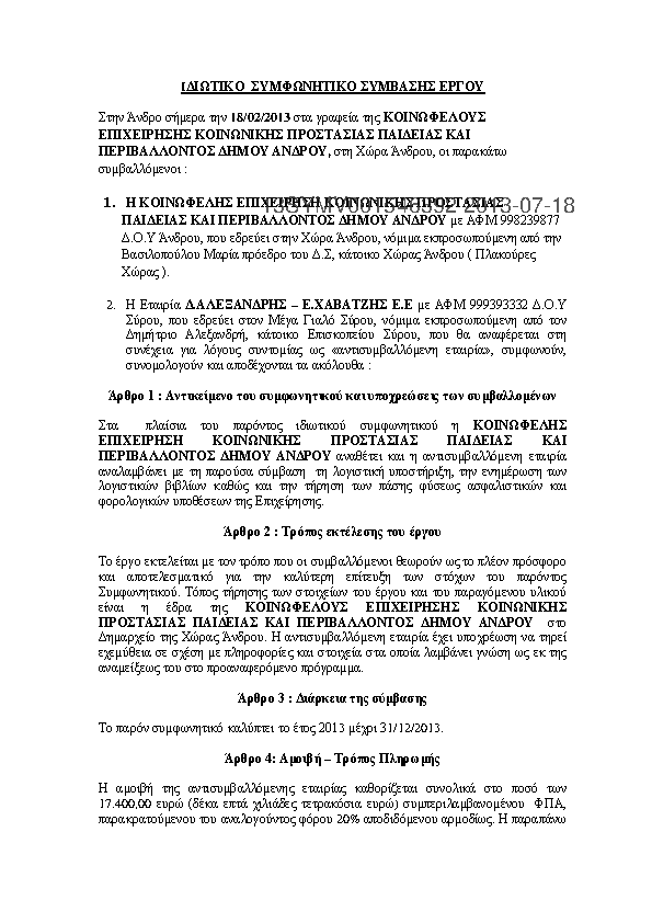 4. Λογιστική Υποστήριξη Κοινωφελούς Επιχ/σης Κοινων. Προστ. Παιδείας & Περιβάλλοντος Δήμου Άνδρου