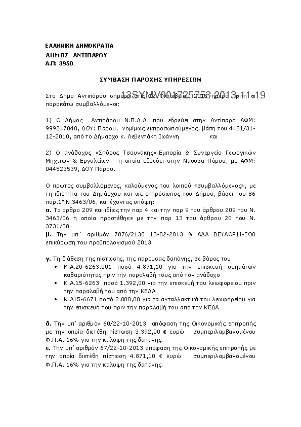2. Διακήρυξη Πρόχειρου Διαγωνισμού (Π4/2013)