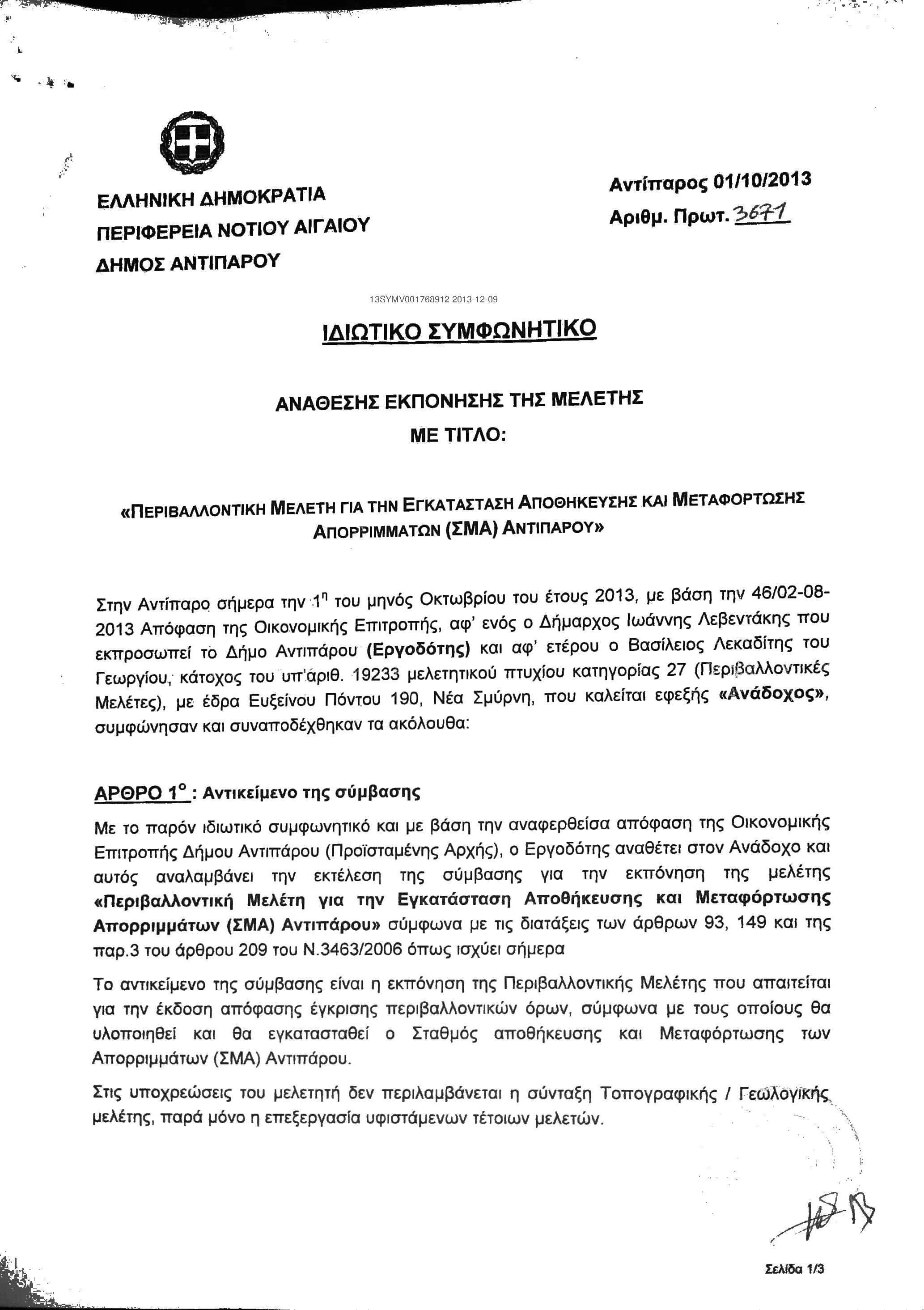 9. Παροχή Υπηρεσιών Περισυλλογής και Αποκομιδής Απορριμάτων του Δήμου Αντιπάρου