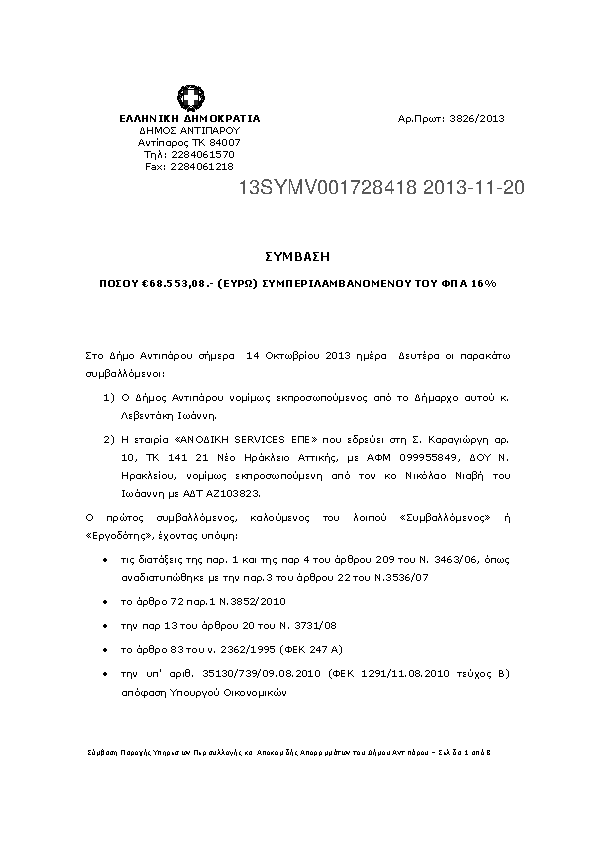 Αναζήτηση σε προκηρύξεις και συμβάσεις για:
